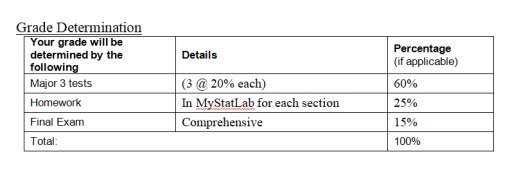 This is our original syllabus, provided by our current math instructor. Her first test was very challenging, and a few students complained. As a result, she informed us that the final would replace Test No. 1 as an option.