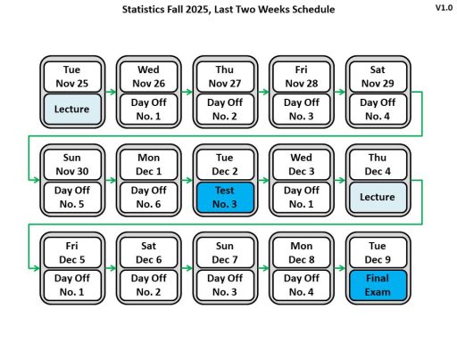 I included my schedule for the last two weeks’ math class, starting Today, or November 25, 2025.